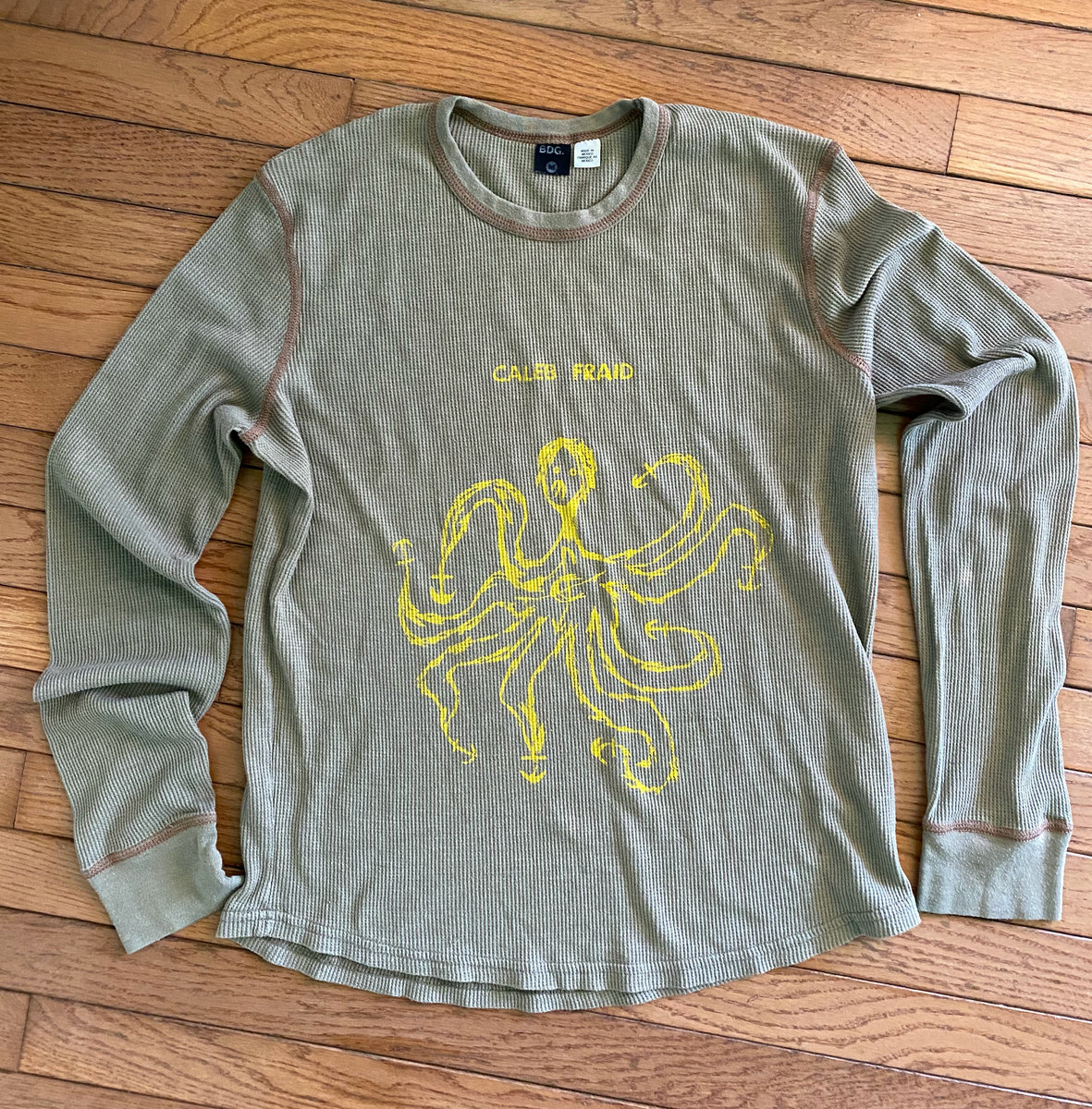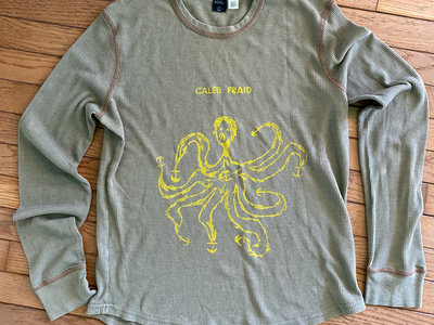 Medium Olive Green Long Sleeve Thermal T-Shirt with Yellow Screen Print